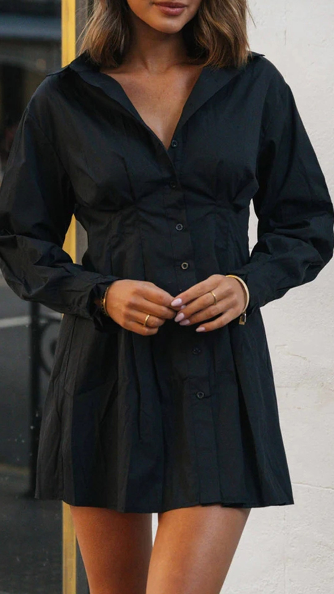 This stylish Blouse Dress is the perfect addition to your wardrobe. Its timeless design and classic silhouette make it a timeless piece that can be dressed up or down for any occasion. The v-neckline and long sleeves add a touch of sophistication to the look, while the buttons down the front give it a touch of modern flair. The solid color of the dress allows you to easily pair it with a variety of accessories and other pieces to create an endless number of looks.