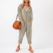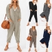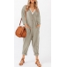 Fashion Solid Color Buttoned V-neck Long Sleeve Loose Jumpsuit