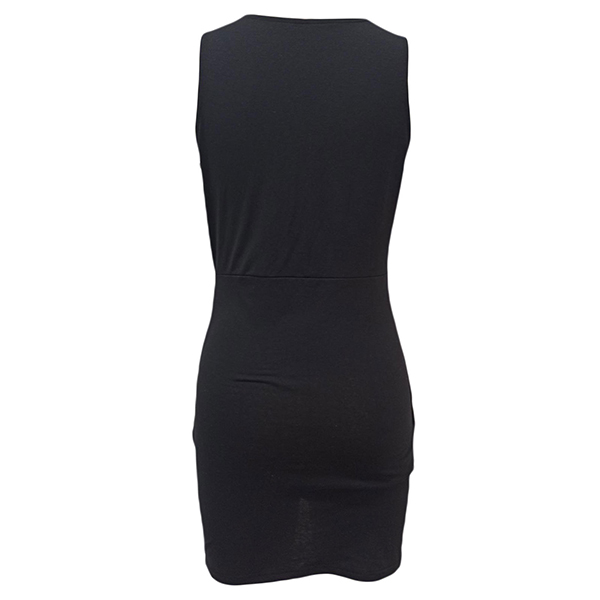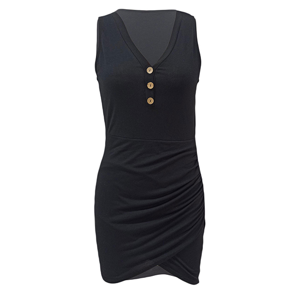 Fashion Solid Color Buttoned V-neck Sleeveless Irregular Hemline Bodycon Dress