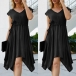 Create a sassy look with the help of this dress. Solid color style,finished with cap sleeve,v-neck and an irregular hem,this dress definitely can offer you a cozy yet stylish style. No matter for your busy workdays or weekend out,this versatile dress can be a wise choice.