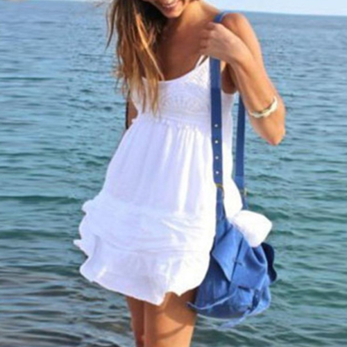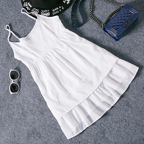 Solid color style,crafted from soft and breezy chiffon material,this sling dress can keep