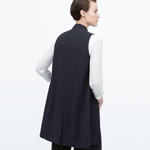 Avez-vous un gilet taille dans votre garde-robe ? Regardez ce gilet, couleur unie, col à revers et devant