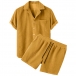 Fashion Solid Color Corduroy Two-piece Set Consist of Polo Shirt and Drawstring Shorts