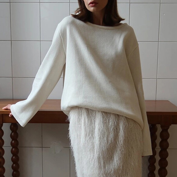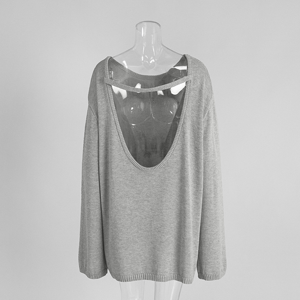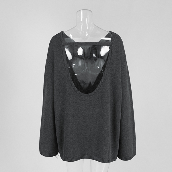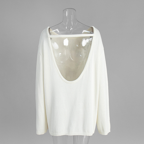 This sweater features classic crew neck styling with dramatic backless design and versatile solid color for modern sophistication. Pair with high-waisted trousers for daily wear.