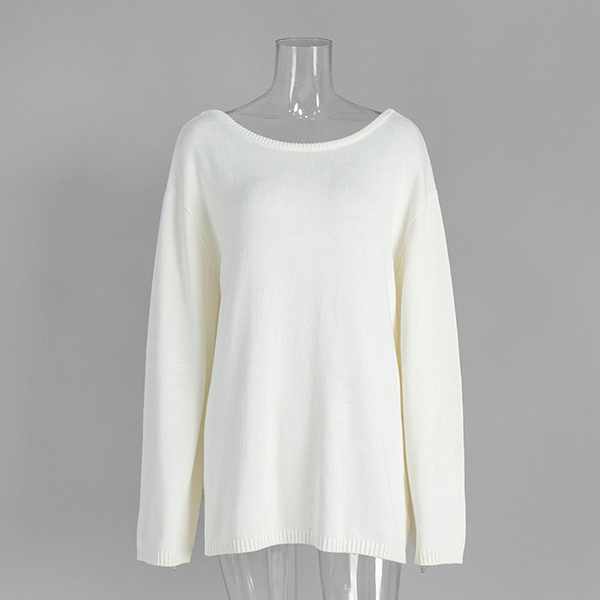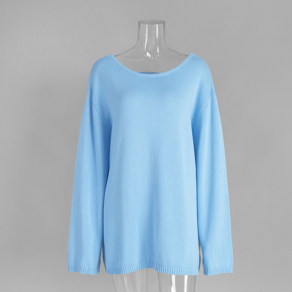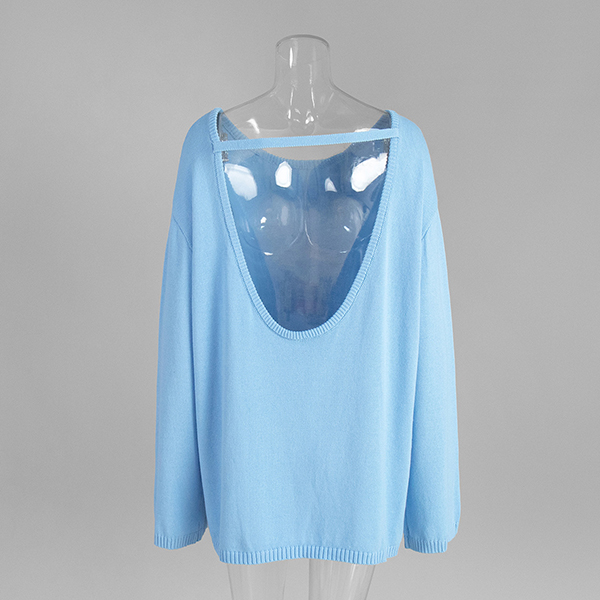 Fashion Solid Color Crew Neck Backless Long Sleeve Sweater