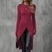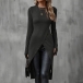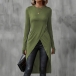 Fashion Solid Color Crew Neck Long Sleeve Front Slit Longline Shirt