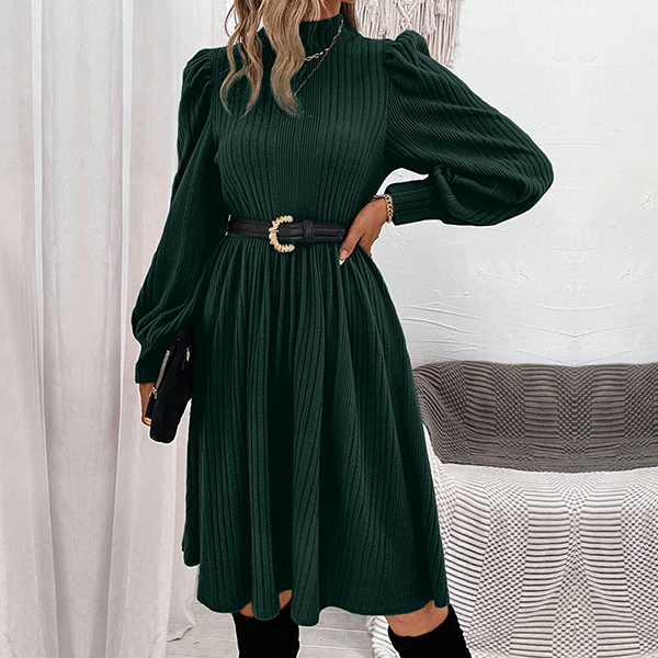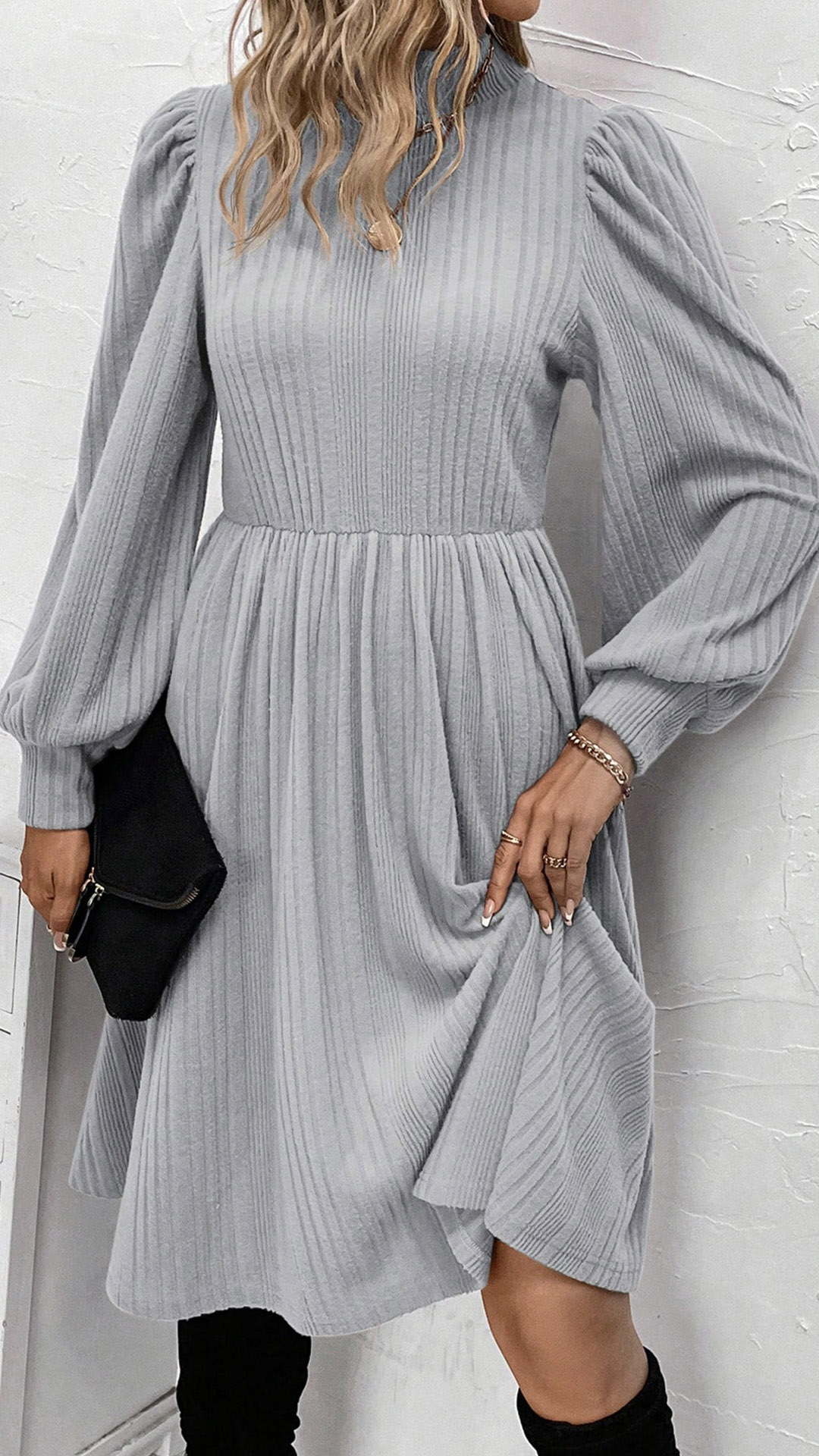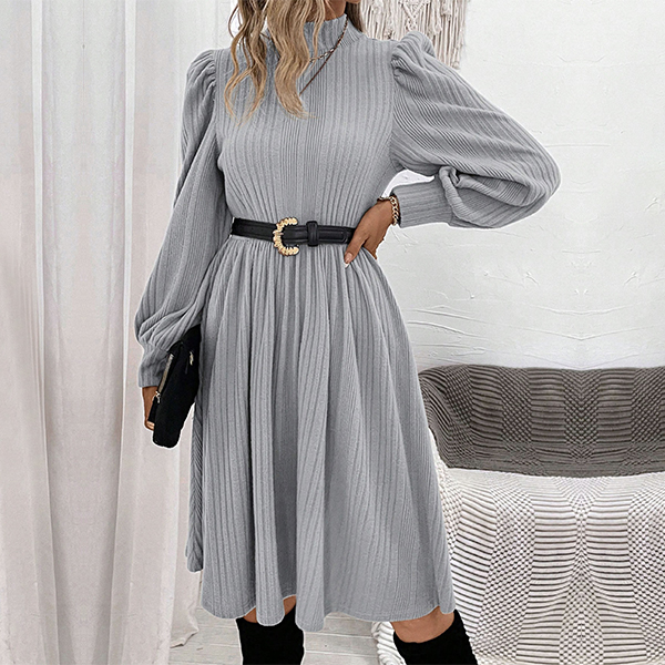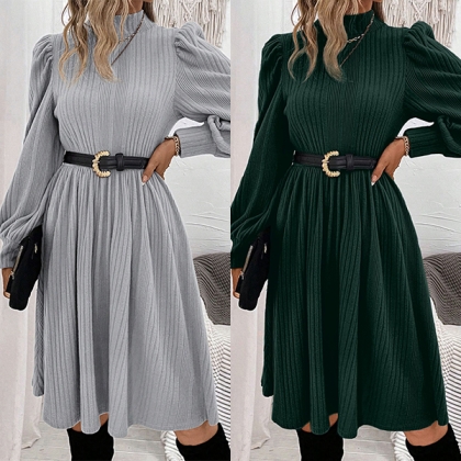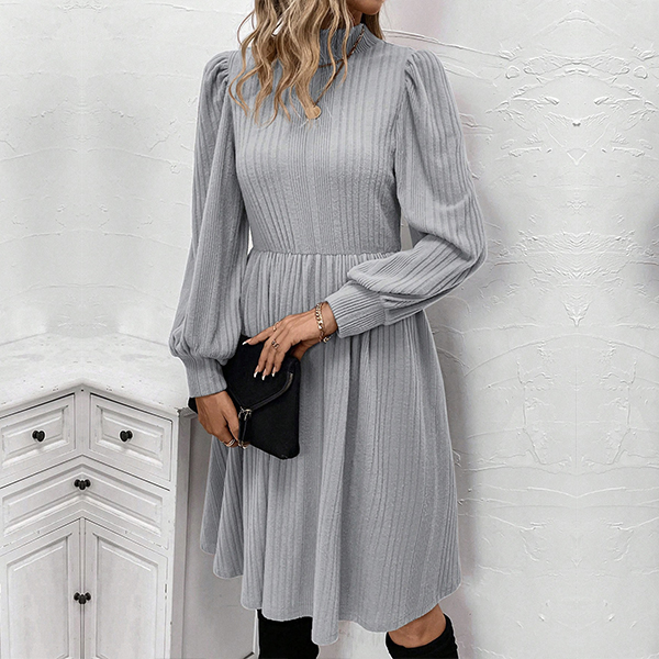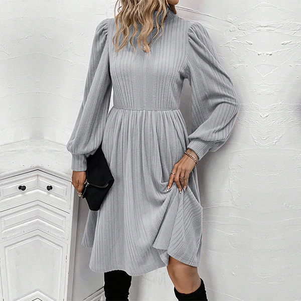 Fashion Solid Color Crew Neck Long Sleeve Mini Dress