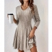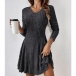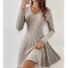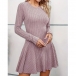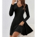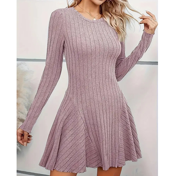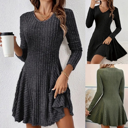 Fashion Solid Color Crew Neck Long Sleeve Ruffle Hemline Mini Dress