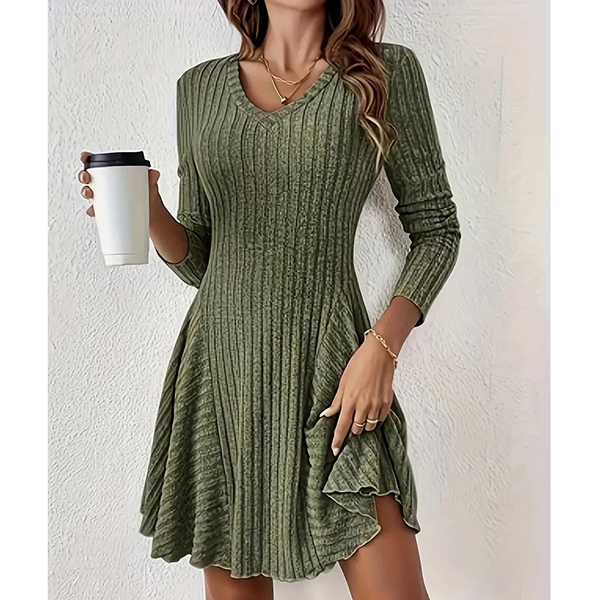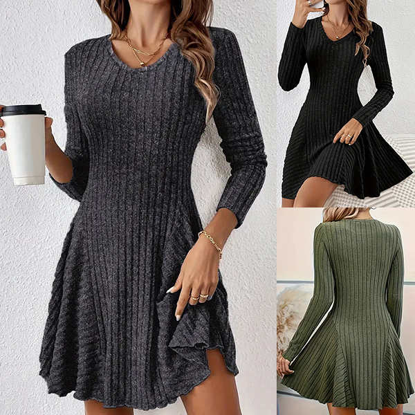 Look at this ribbed dress~The ruffle hemline creates delightful movement and whimsical texture contrast against the dress's streamlined silhouette. Multi-colors avabile.