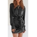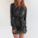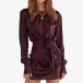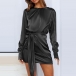 Fashion Solid Color Crew Neck Long Sleeve Self-tie Satin Dress
