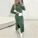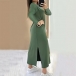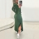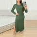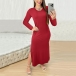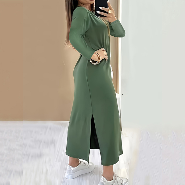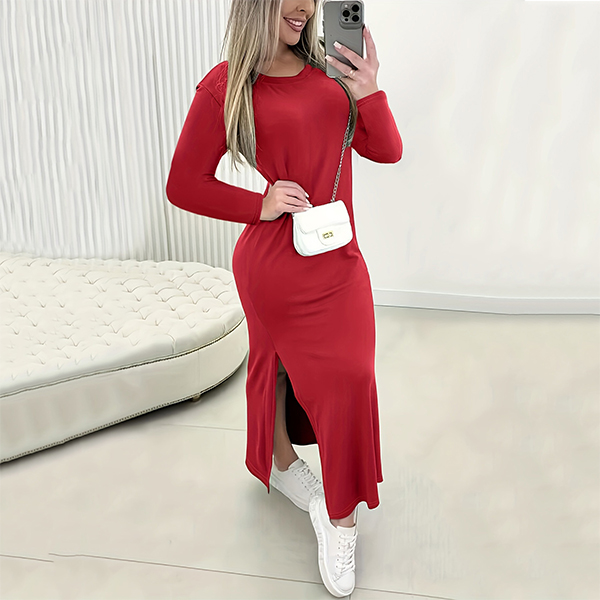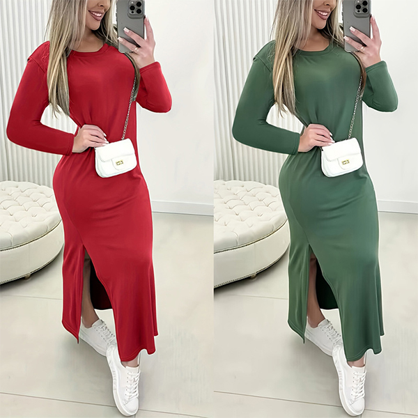 Fashion Solid Color Crew Neck Long Sleeve Side Slit Maxi Dress