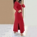 This maxi dress features a classic crew neckline, long sleeves, and side slits, creating a chic and versatile look.Color:Red,Green, which one do you like?