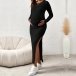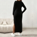 Fashion Solid Color Crew Neck Long Sleeve Side Slit Ribbed Maternity Dress