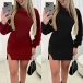 Fashion Solid Color Crew Neck Long Sleeve Side Slit Sweater Dress