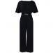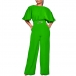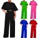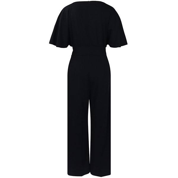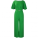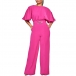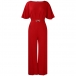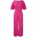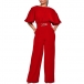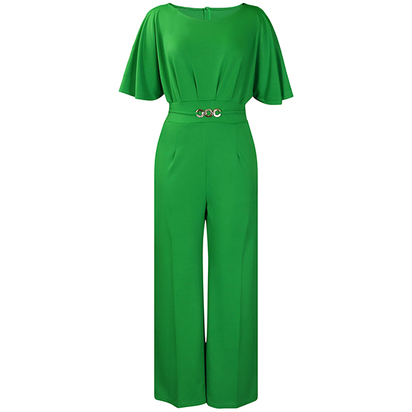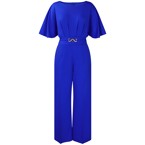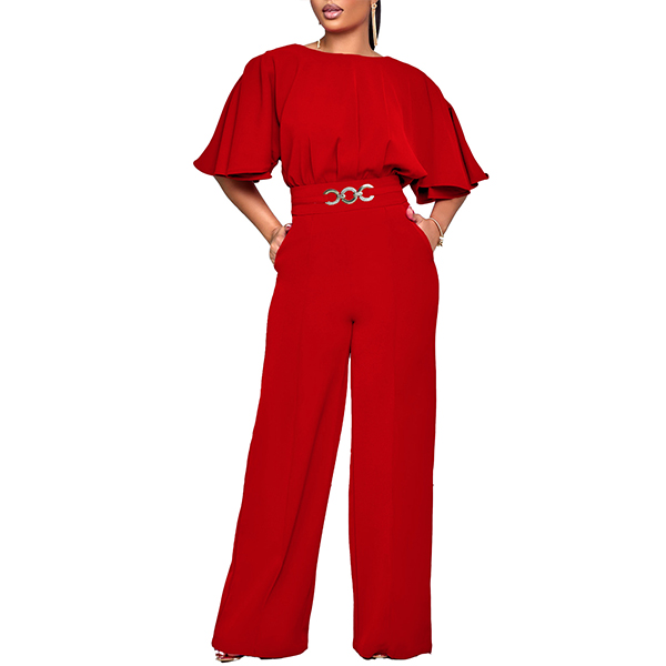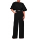 Fashion Solid Color Crew Neck Short Sleeve Chain Waist Wide-leg Jumpsuit