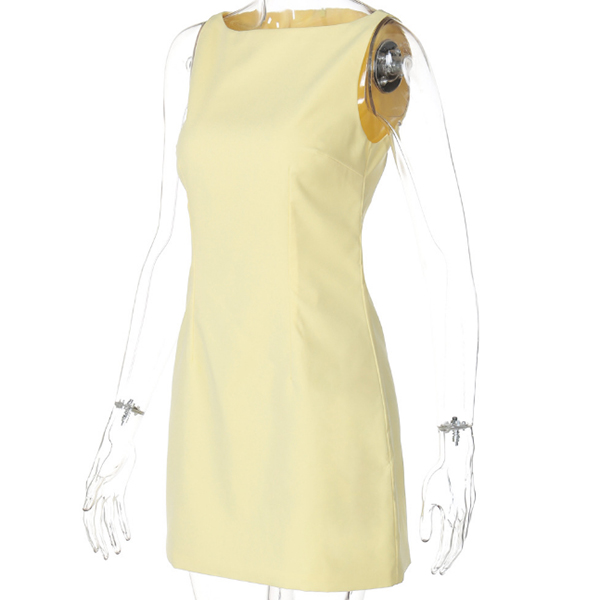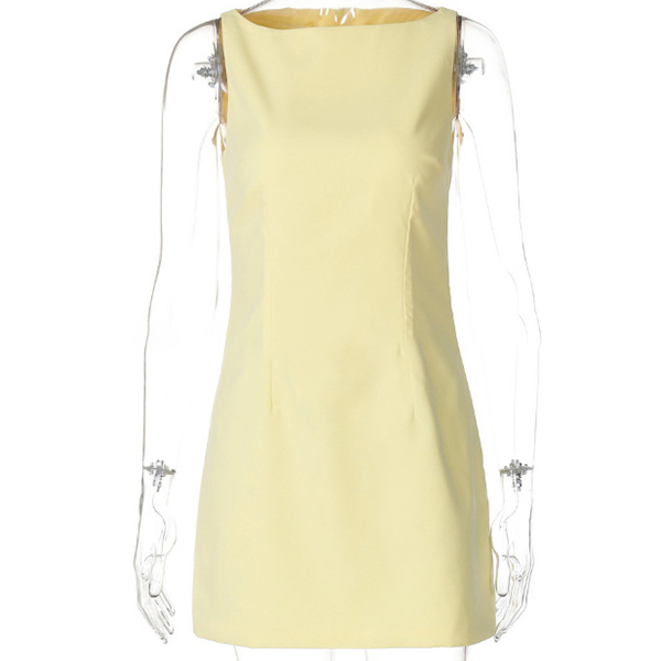 Fashion Solid Color Crew Neck Sleeveless Back Zipper Mini Dress