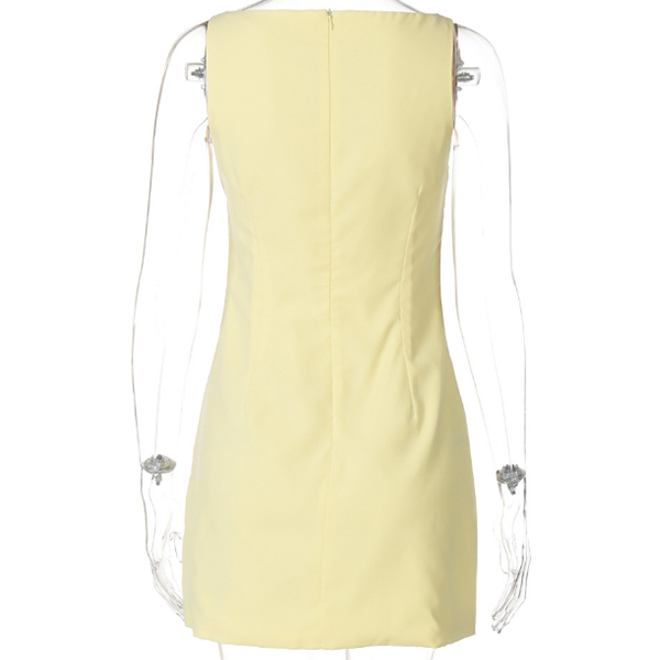 This is a chic and modern dress that exudes style and sophistication. The solid color design offers a timeless and versatile aesthetic, creating a sleek and polished look that is perfect for a variety of occasions. Color:Yellow,Black, which one do you like?