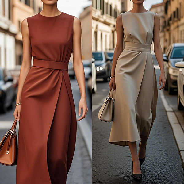 This versatile dress features a classic crew neckline and a flattering high-rise silhouette that accentuates your waist. The midi length provides a sophisticated touch, making it suitable for both casual and formal occasions. Crafted from soft, breathable fabric, it ensures comfort throughout the day.