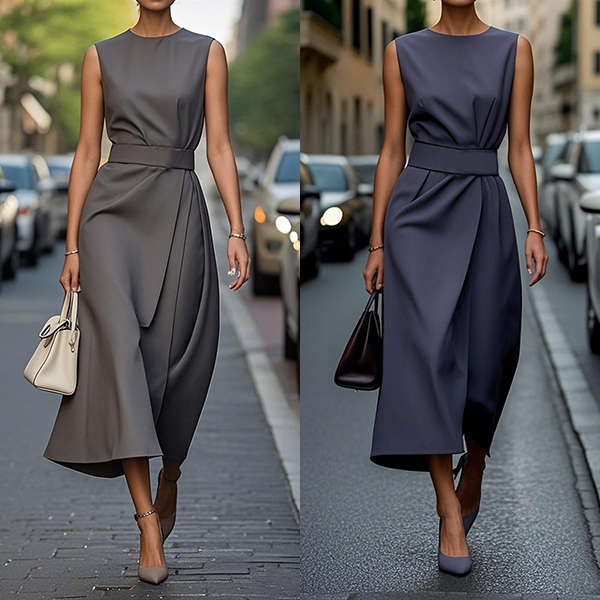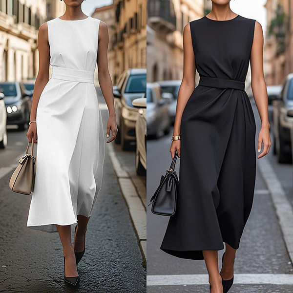 Fashion Solid Color Crew Neck Sleeveless High-rise Midi Dress
