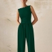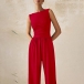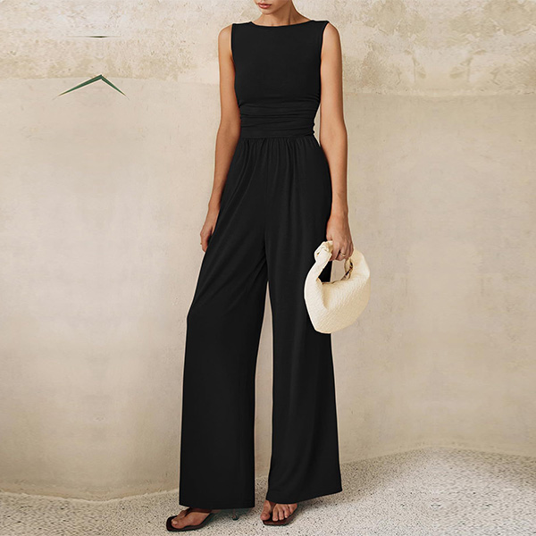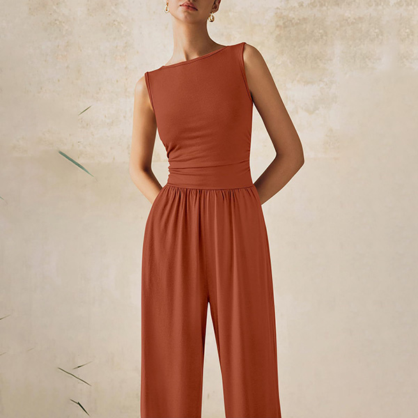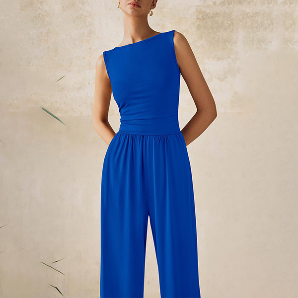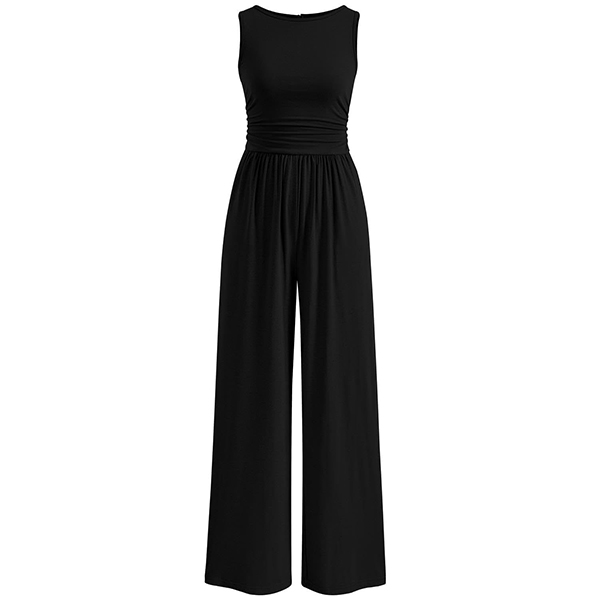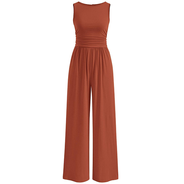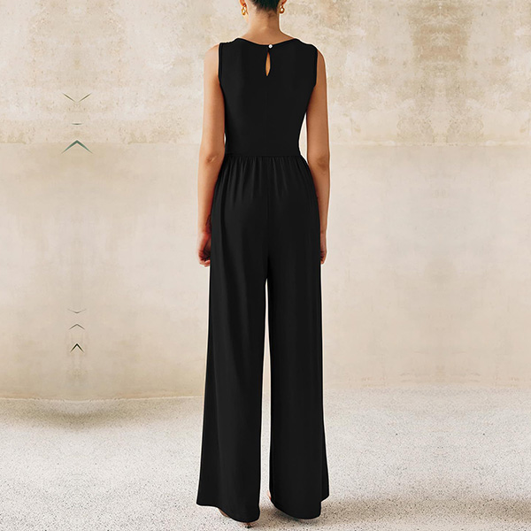 Fashion Solid Color Crew Neck Sleeveless High-rise Wide-leg Jumpsuit
