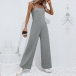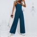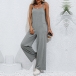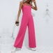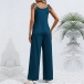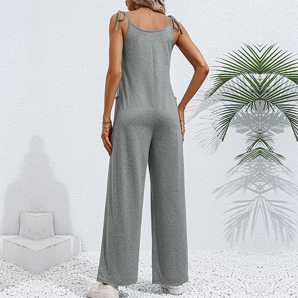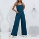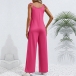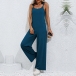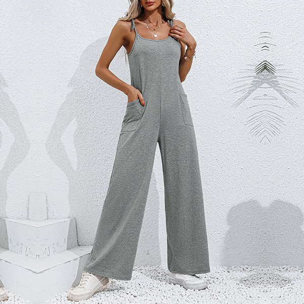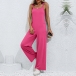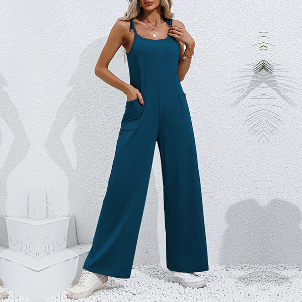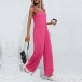 Fashion Solid Color Crew Neck Sleeveless Patch Pockets Jumpsuit