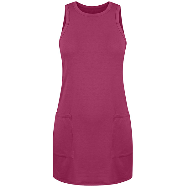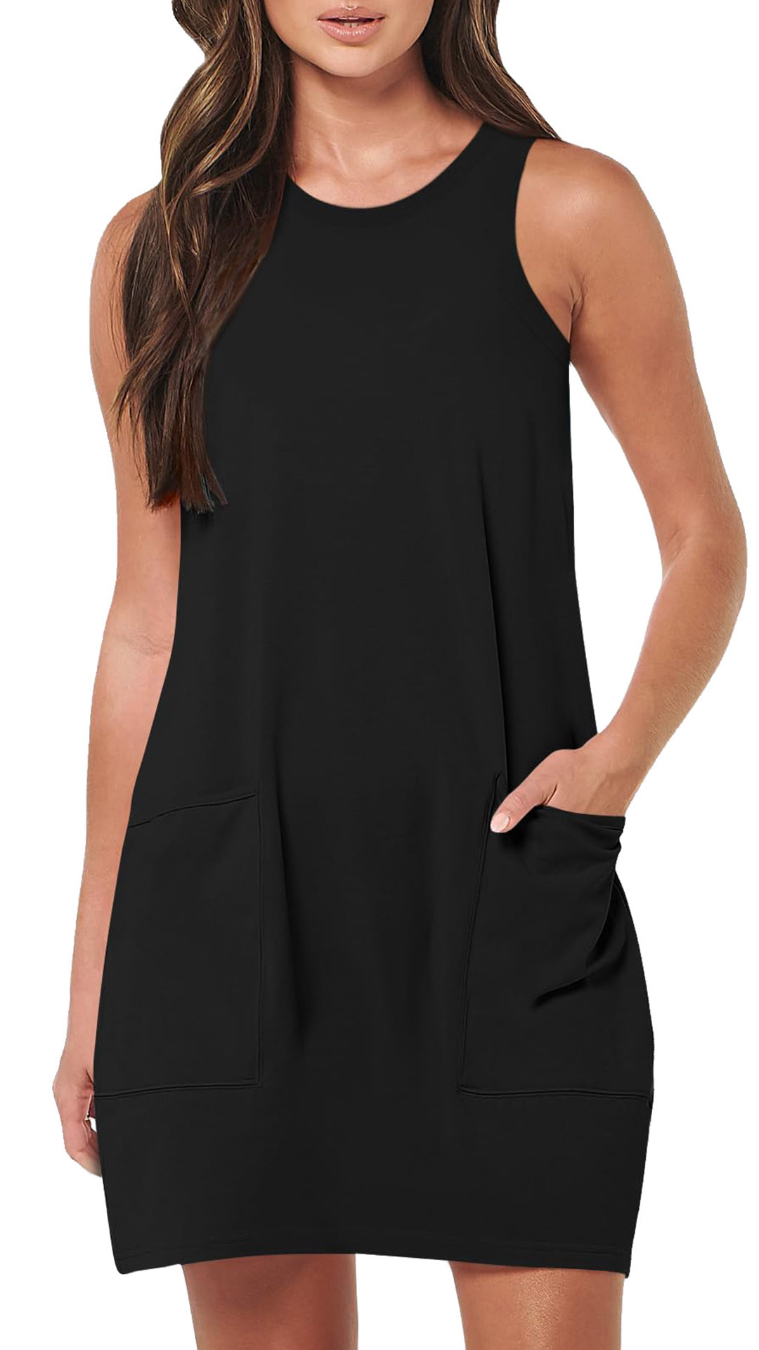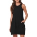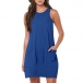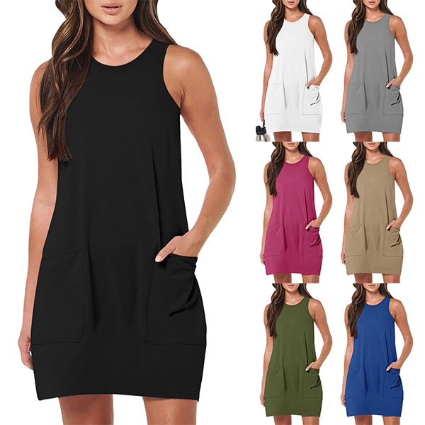 Fashion Solid Color Crew Neck Sleeveless Patch Pockets Mini Dress