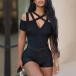 Fashion Solid Color Cross-criss V-neck Open-shoulder Short Sleeve Slim Fit Romper (Without Belt)