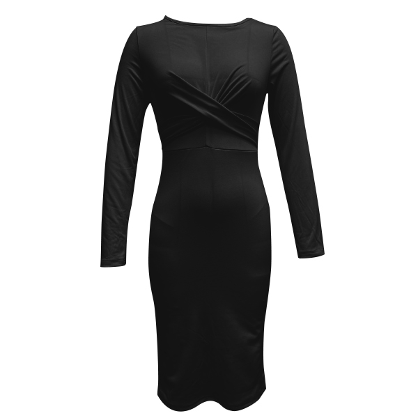 Looking for a dress that will hug your curves in all the right places? Look no further than this Fashion Bodycon Dress. The cross ruched detail on the front of the dress will accentuate your waist, while the round neckline and long sleeves will keep you covered up. Wanna have a try?