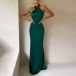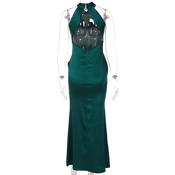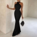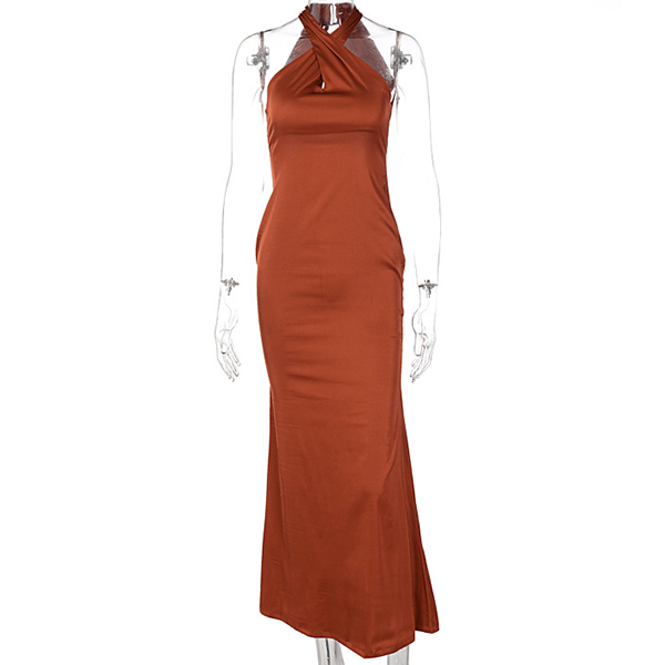 Fashion Solid Color Crossover Halter Neck Backless Side Slit Party Dress