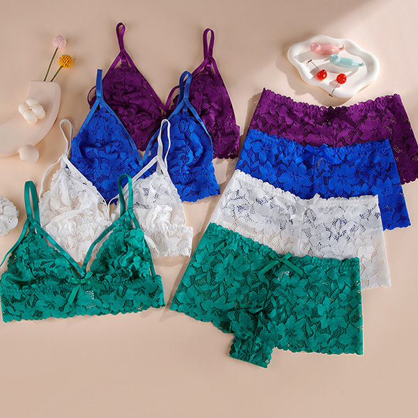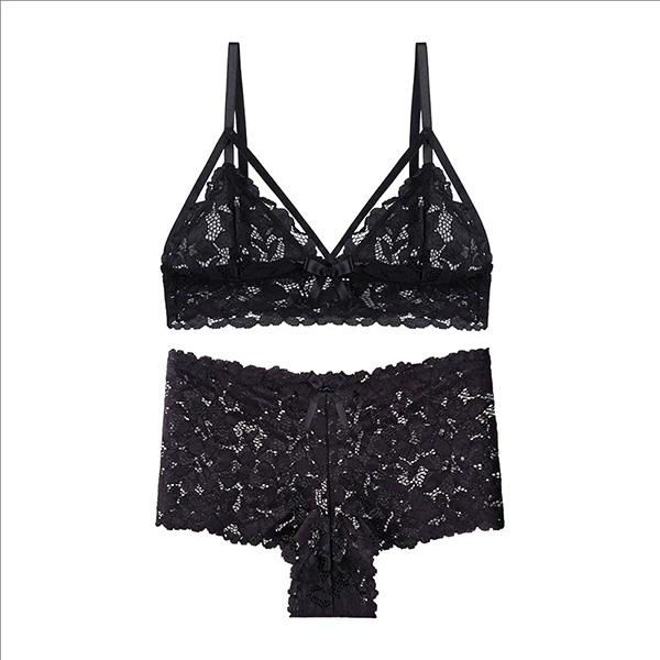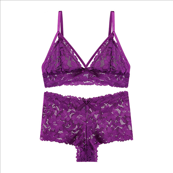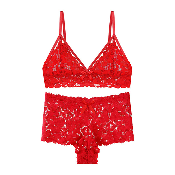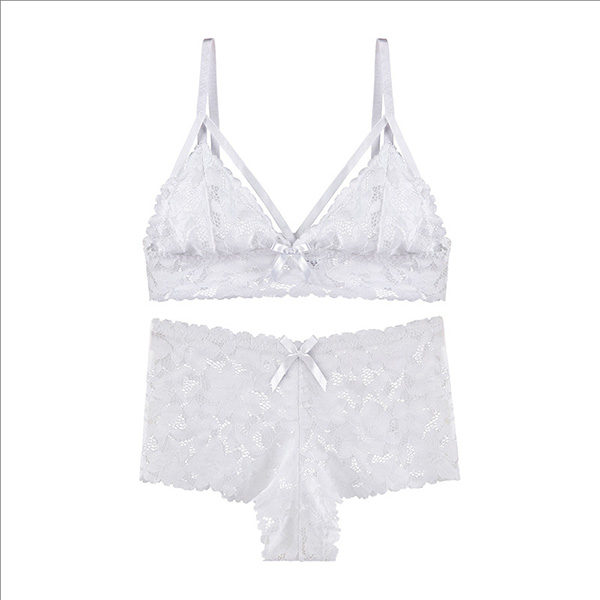 Fashion Solid Color Cutout Bowknot Two-piece Lingerie Set