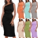 Fashion Solid Color Cutout Side Drawstring Gathered Bodycon Party Dress