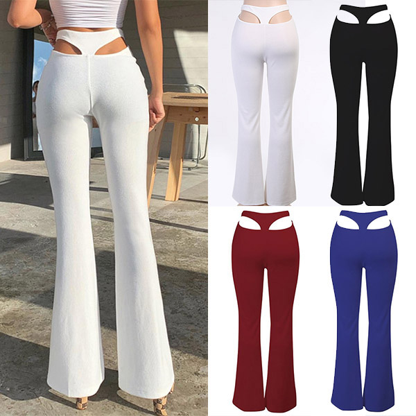 Made from a high-quality fabric, these pants are extremely comfortable to wear and will make you look great no matter what you pair them with. With a wide-leg design, these pants are also very flattering and will make your legs look longer and leaner. Additionally, the cutout detail on the waist adds a touch of style and femininity.
