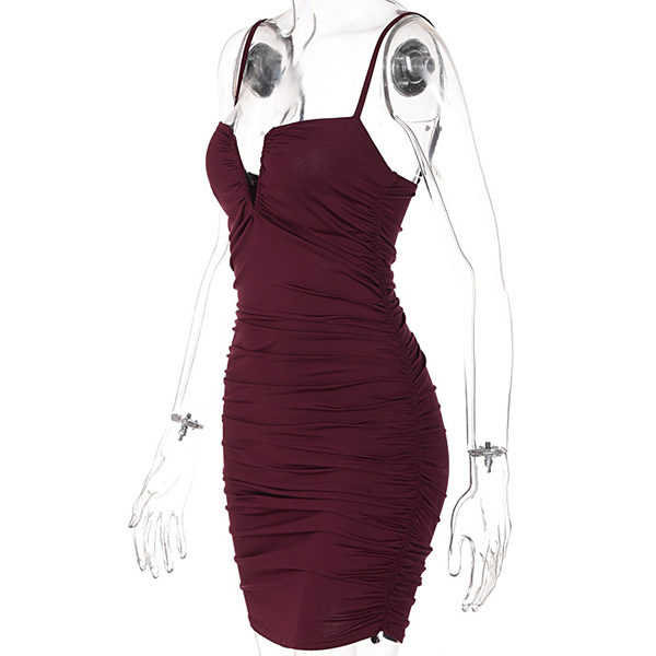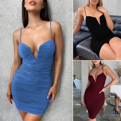 Looking for a versatile dress that you can wear to a number of different occasions? How about this one? Solid color style, narrow adjustable shoulder strap, deep V-neck and bodycon slihoutte, a simple but sexy dress. This dress can be dressed up or down and is perfect for any event.