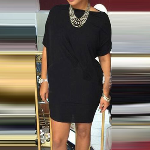 Features a solid color,with dolman sleeve and round neckline design,this dress can give you