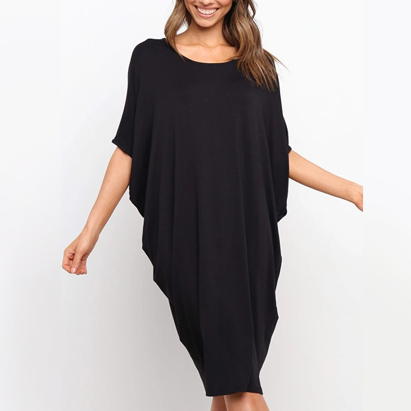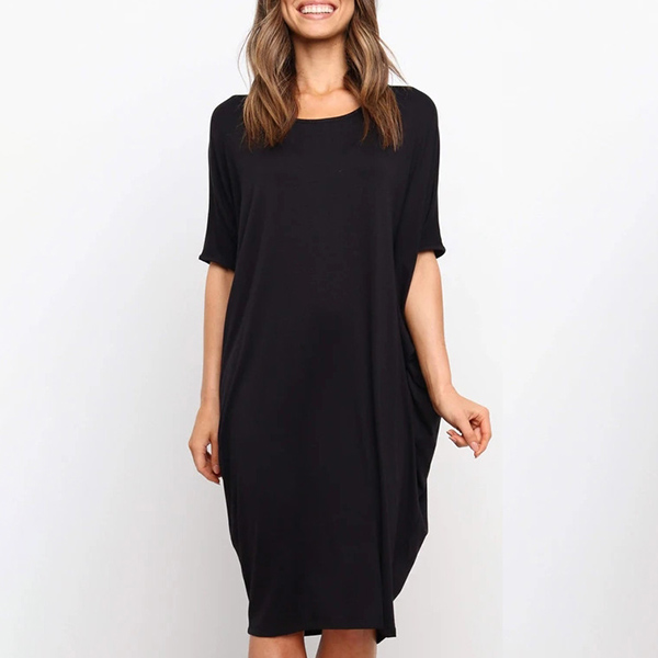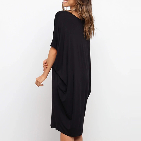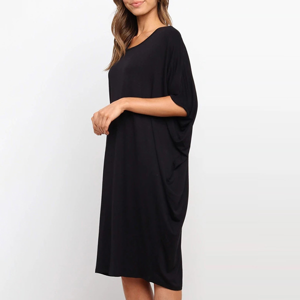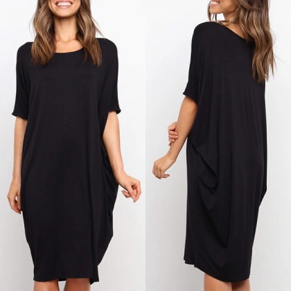 Fashion Solid Color Dolman Sleeve Round Neck Loose Dress