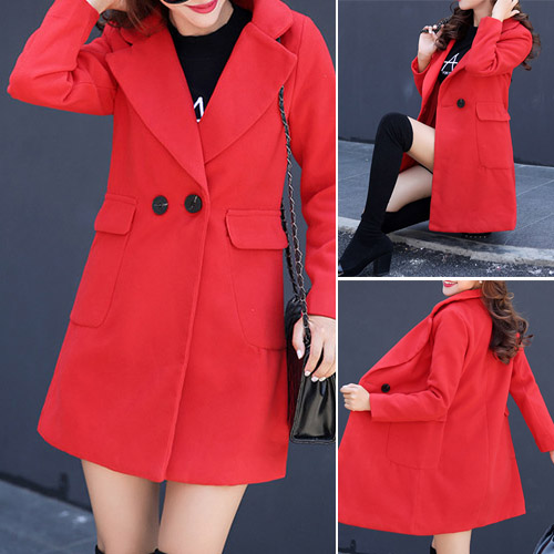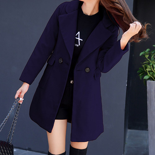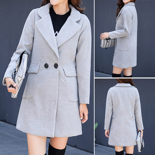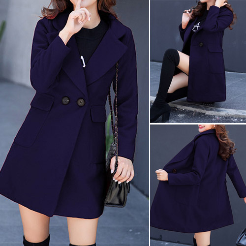 Stylish lapel design is completed with double-breasted, long sleeve and gathered waist style, adding its