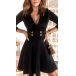 Fashion Solid Color Double-breasted V-neck Long Sleeve Mini Dress