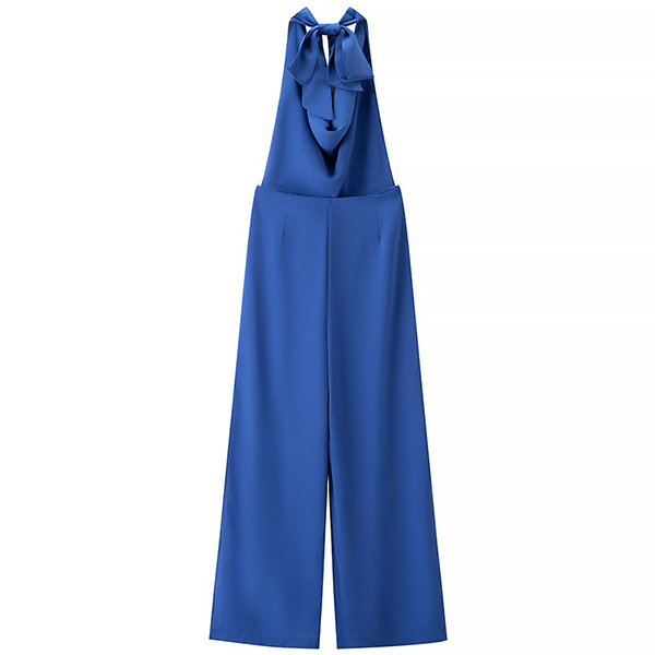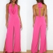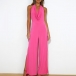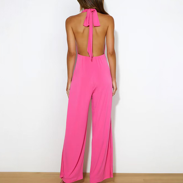 Fashion Solid Color Draped Halterneck Backless Side Slit Jumpsuit
