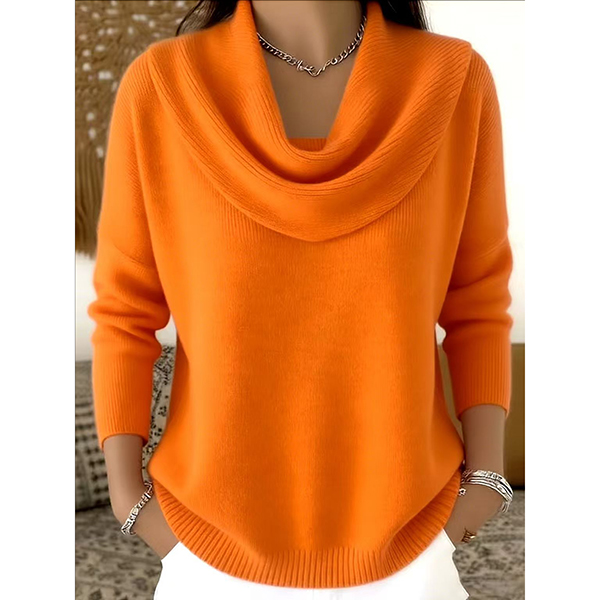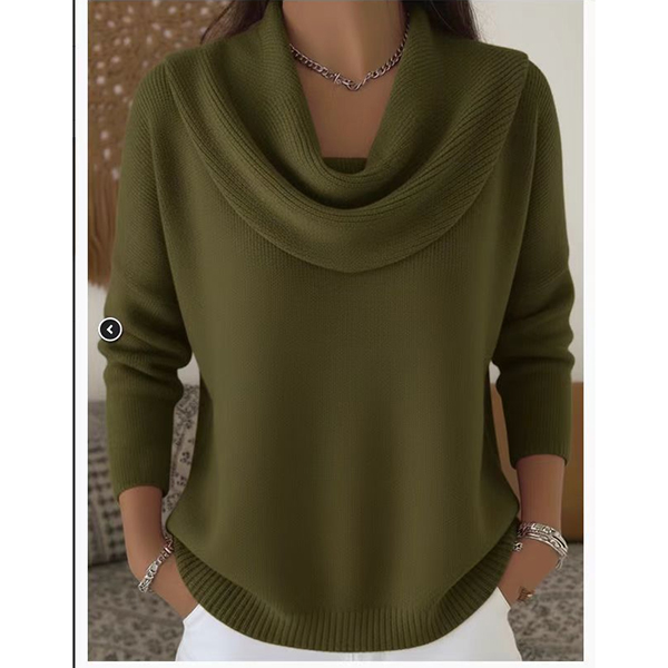 Fashion Solid Color Draped Neck Long Sleeve Sweater