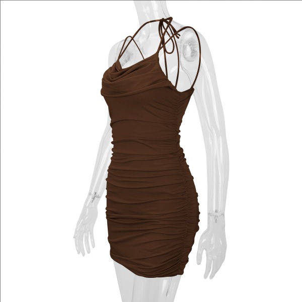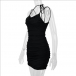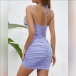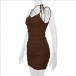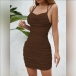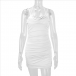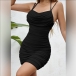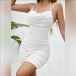 Fashion Solid Color Draped Square Neck Ruched Bodycon Dress