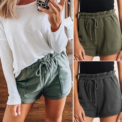 Fashion Solid Color Drawstring Elastic Waist Shorts