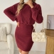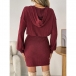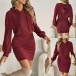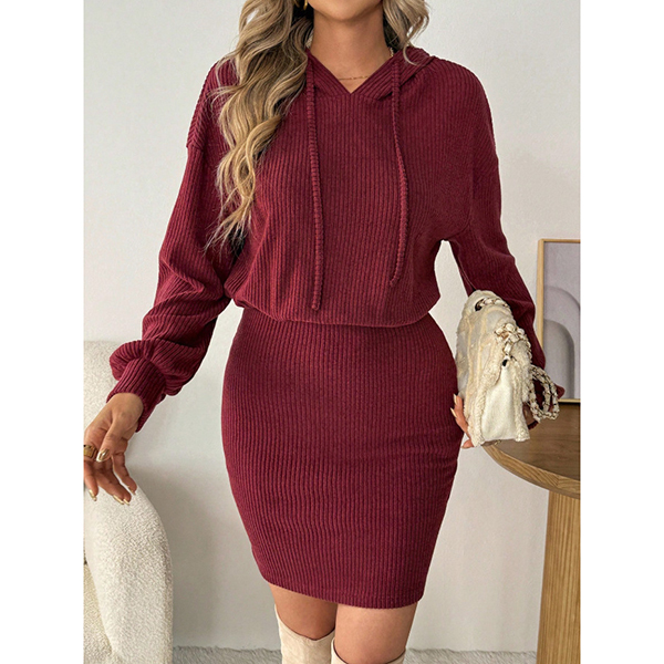 Fashion Solid Color Drawstring Hooded Long Sleeve High-rise Ribbed Dress