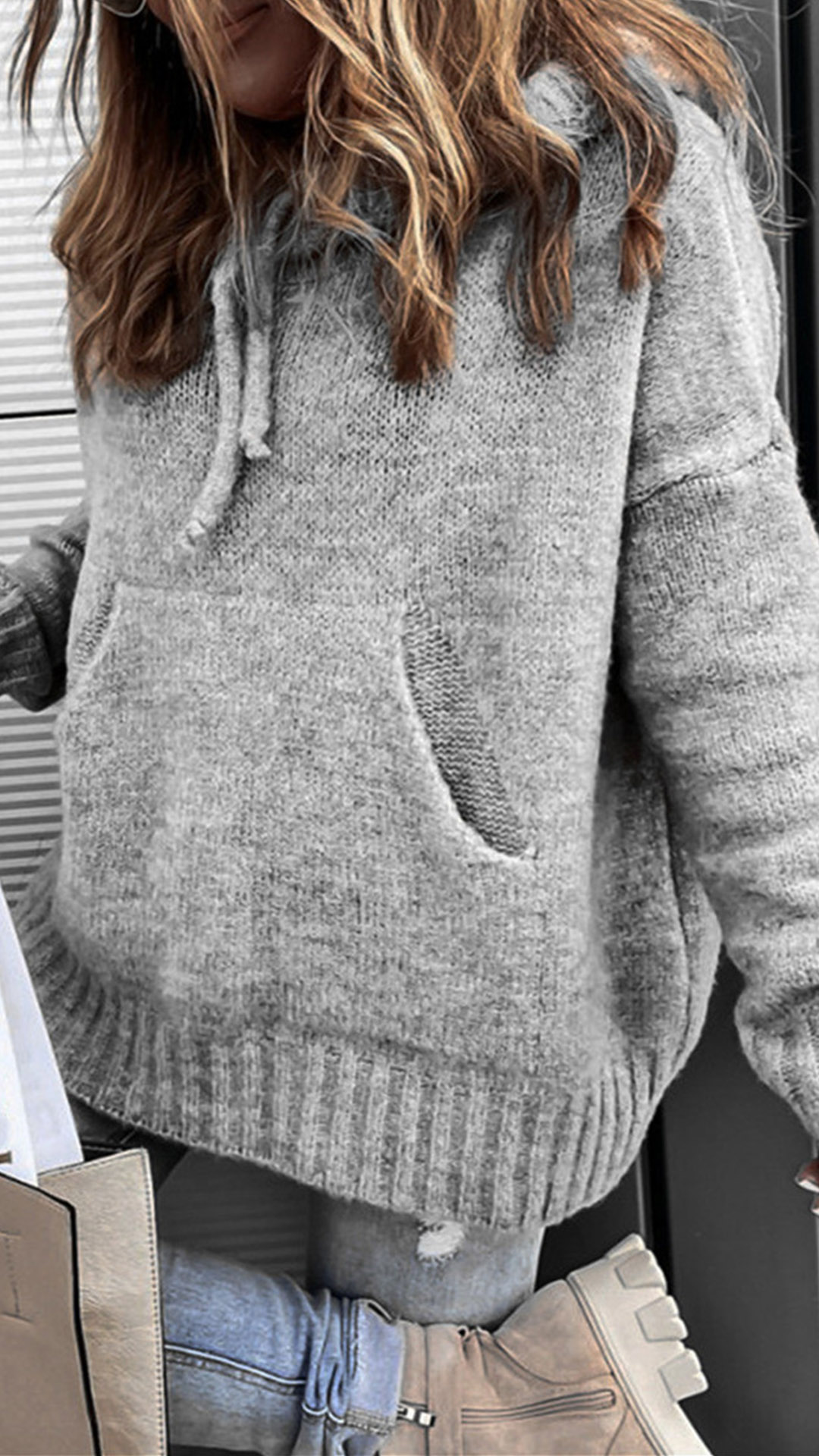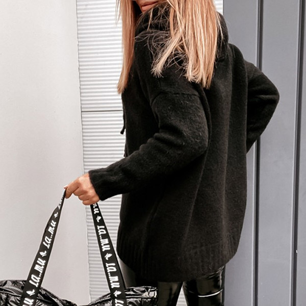 Fashion Solid Color Drawstring Turtleneck Long Sleeve Kangaroo Pocket Knitted Sweater