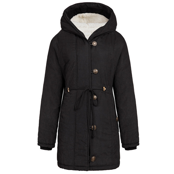 Padded coat is a quintessential must-have item when the cold season hits. So how about this one? It comes with a solid color,the hooded silhouette and faux cashmere lining design will ensure you a warm and comfortable day,the drawstring waist design can help showcase your figure. You can trust in this piece to give you a warm and comfortable winter.