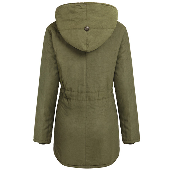 Fashion Solid Color Drawstring Waist Faux Cashmere Lining Hooded Padded Coat