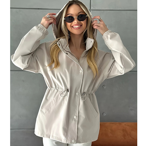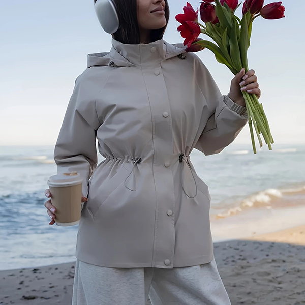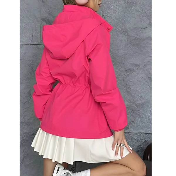Fashion Solid Color Drawstring Waist Hoodie Waterproof Jacket