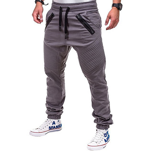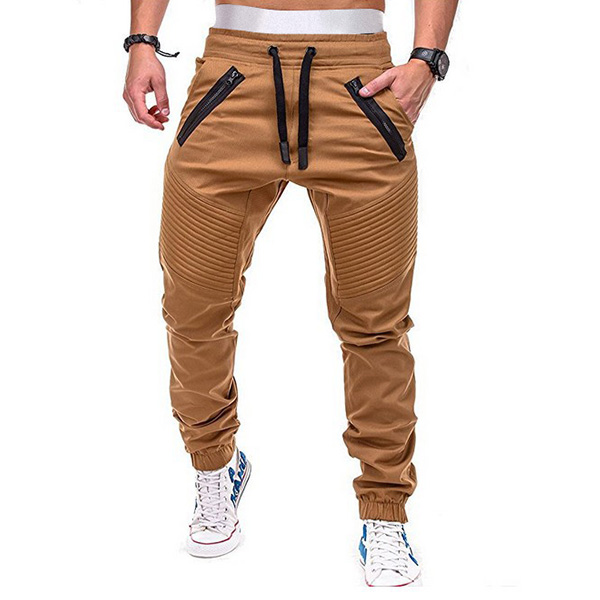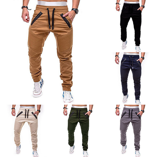 Fashion Solid Color Drawstring Waist Men's Casual Sports Pants