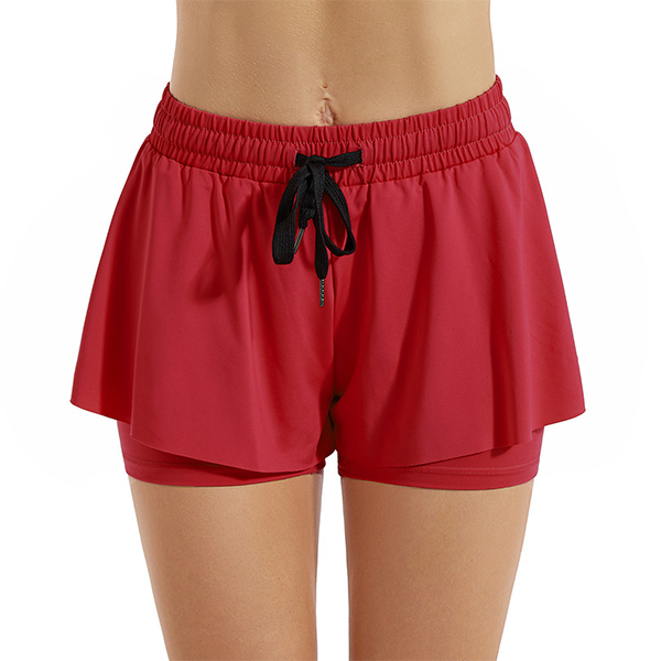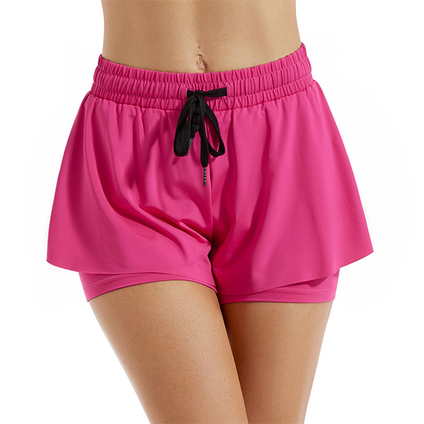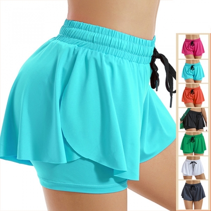 Fashion Solid Color Elastic Drawstring Fake-two-piece Sport Shorts