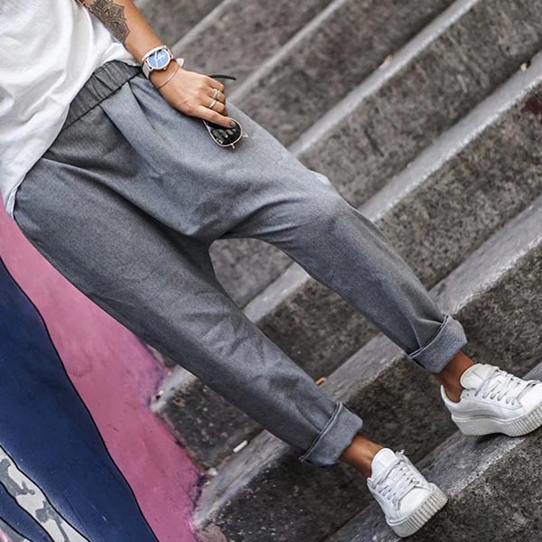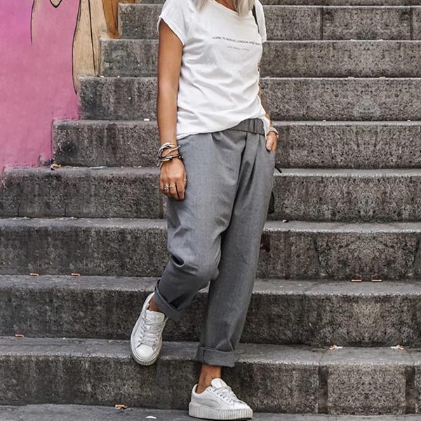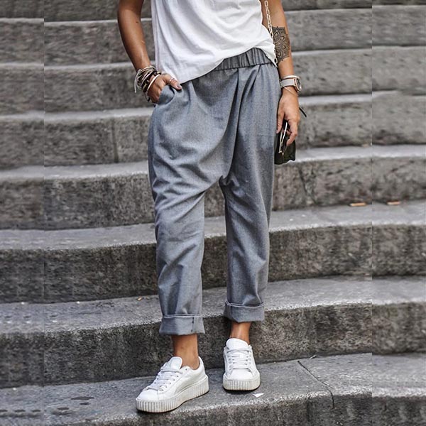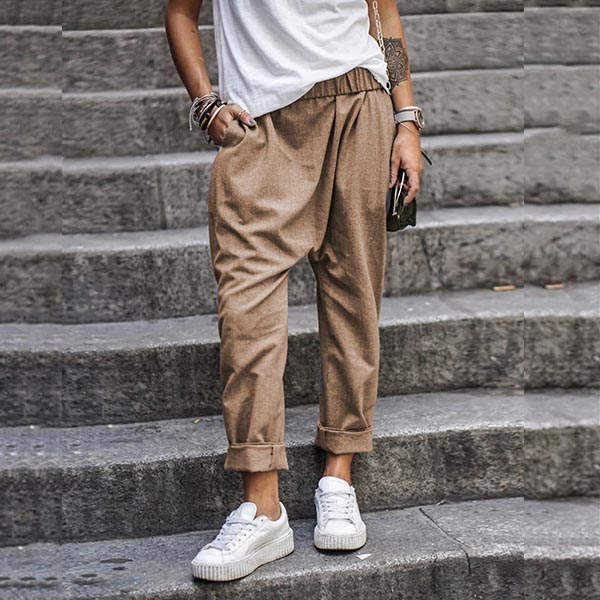 This pants comes with a solid color,crafted from soft and breathable fabric,with an elastic waist and a loose silhouette,this piece is sure to offer you a long-lasting comfort. For a simple,casual and relaxed daily style,this pants can be a good choice.