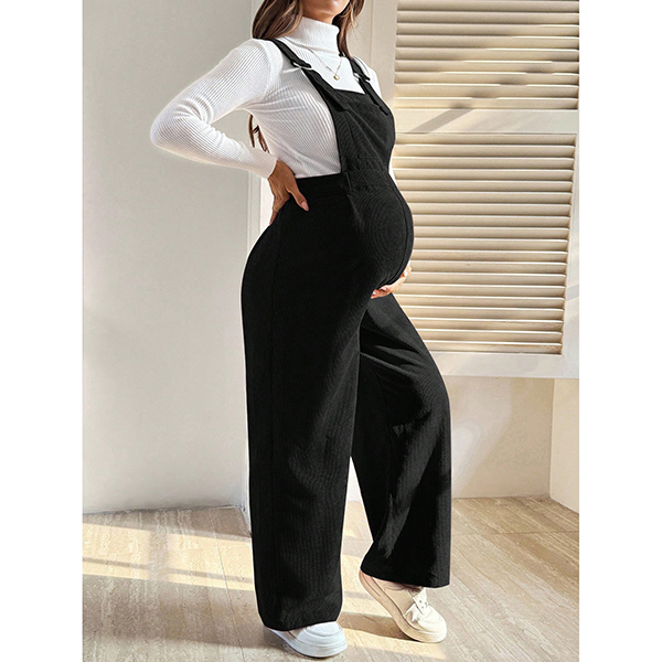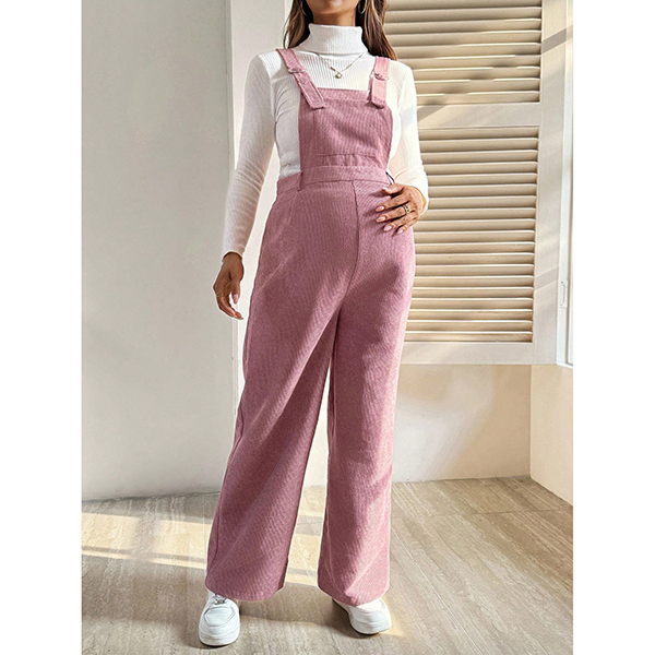 Fashion Solid Color Elastic Waist Maternity Adjustable Suspender Jumpsuit